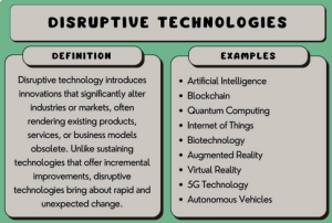 - Industries that embrace these disruptive technologies can redefine their practices. For example, traditional learning institutions may need to adapt to virtual education, and manufacturers may need to shift to more flexible and customized production methods.